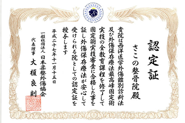 日本柔整外傷協会 認定証