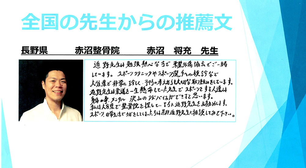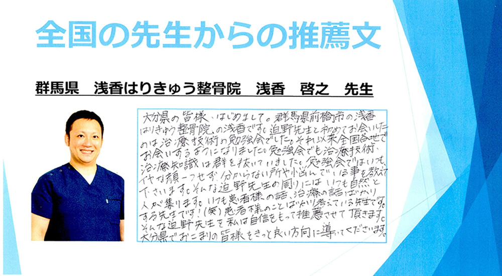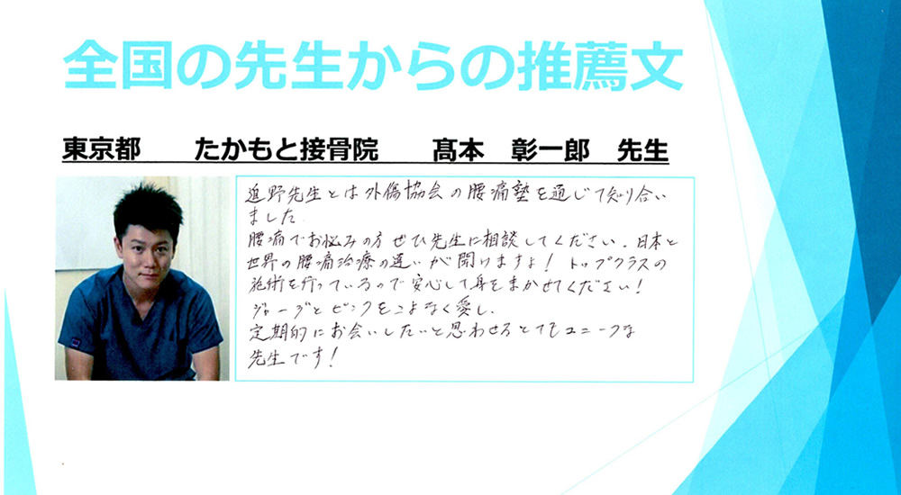 全国の治療院様からも推薦していただいています!